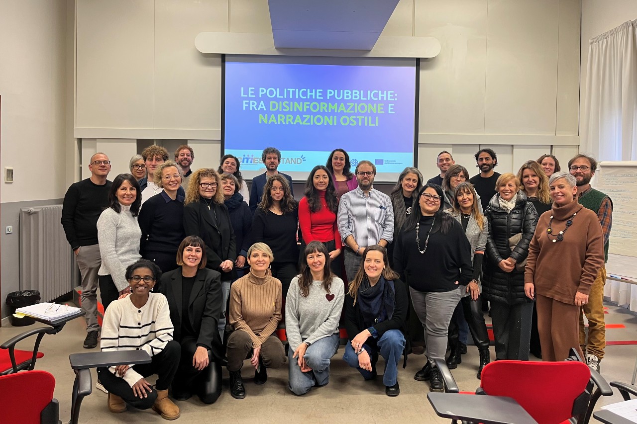 "plaintext": "La Comunit\u00e0 di Pratiche del progetto CITIES in collaborazione con il progetto STAND, durante la quale si \u00e8 lavorato alla co-costruzione di nuove narrazioni per comunicare le politiche pubbliche, ha riunito personale amministrativo e policy makers delle cinque citt\u00e0 coinvolte, insieme a ICEI e Mondinsieme .",
