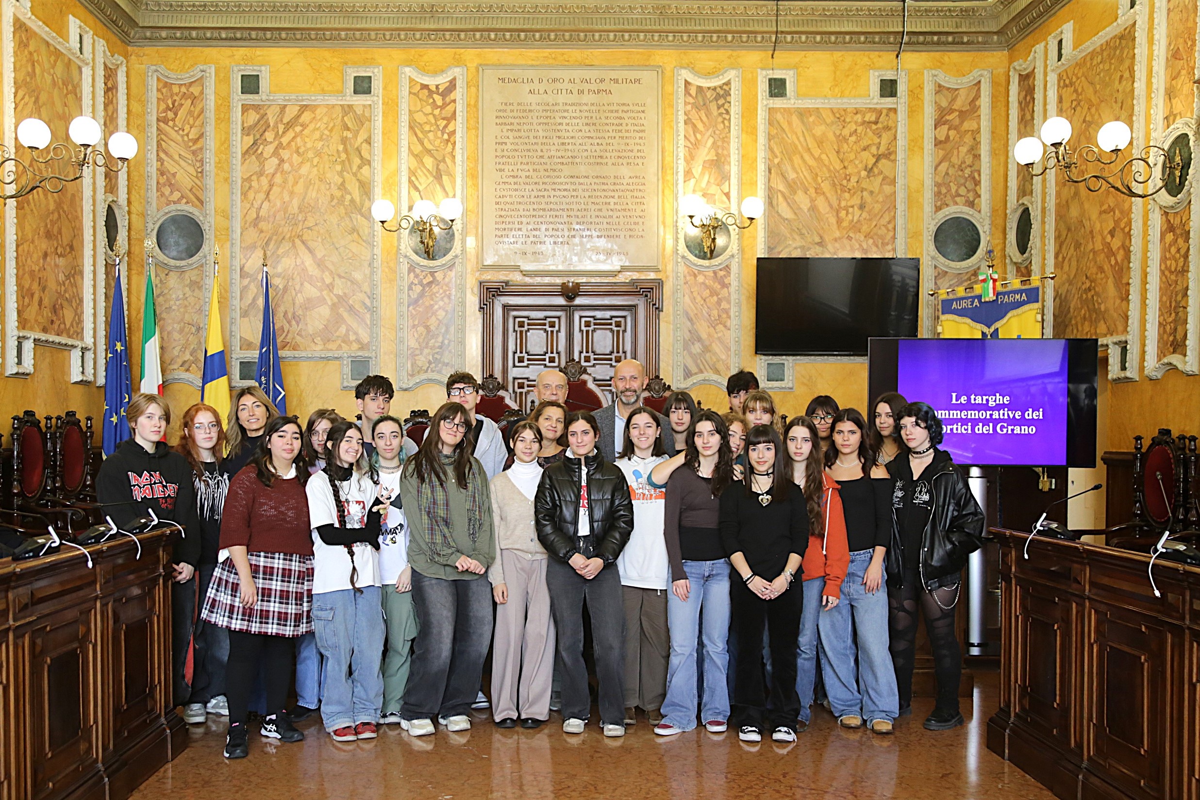 "text": "Si \u00e8 tenuto in Sala del Consiglio comunale il primo incontro con una classe del Liceo Artistico Toschi, coinvolta dal Comune \u2013 per la presentazione storica del ciclo di targhe commemorative presenti sotto i Portici del Grano. L\u2019iniziativa si inserisce nel progetto avviato dal Comune di Parma in collaborazione con le istituzioni catalane, che prevede la realizzazione di un bassorilievo dedicato ai combattenti volontari antifascisti di Parma e provincia che parteciparono alla Guerra civile spagnola. L\u2019opera, ideata dall\u2019artista catalano "