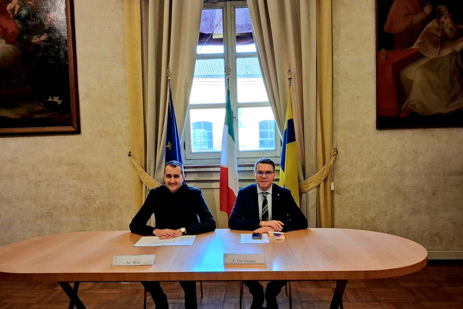 "plaintext": "Alla conferenza stampa erano presenti l\u2019Assessore ai Lavori Pubblici Francesco De Vanna e l\u2019Assessore allo Sport Marco Bosi ."
